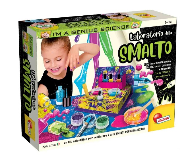 Ще один набір для дівчаток, які полюбляють експериментувати зі стилем та створювати щось нове. Набір Lisciani I’m a Genius Лабораторія емалі допоможе отримувати творче задоволення, створюючи кольорові лаки для нігтів і прикрашаючи їх блискучими блискітками. Крім того, лак для нігтів змінюватиме колір при кожному контакті з холодною або гарячою водою!