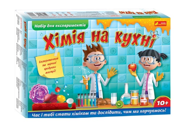 Час вашій дитині стати справжнім хіміком і пірнути у світ дослідів і експериментів! Потрібна тільки кухня та цей набір. Величезна кількість експериментів, які відкриють світ хімії: чисті речовини і суміші, вода, фізичні і хімічні явища, кисень, залізо, вуглекислий газ, фрукти, ягоди, горіхи! Набір для експериментів Ranok Creative Хімія на кухні містить усе необхідне для проведення експериментів, від посуди до всіляких цікавих речовин та реагентів.