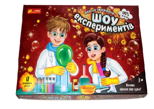 З набором для експериментів Ranok Creative Шоу дитина буде вивчати науку хімію весело і цікаво. У набір входить якісне обладнання, захисні окуляри, а також усі реактиви і матеріали для проведення 12 безпечних дослідів. Інструкція: детальна, з фотоілюстраціями, усі експерименти пояснюються з наукової точки зору.